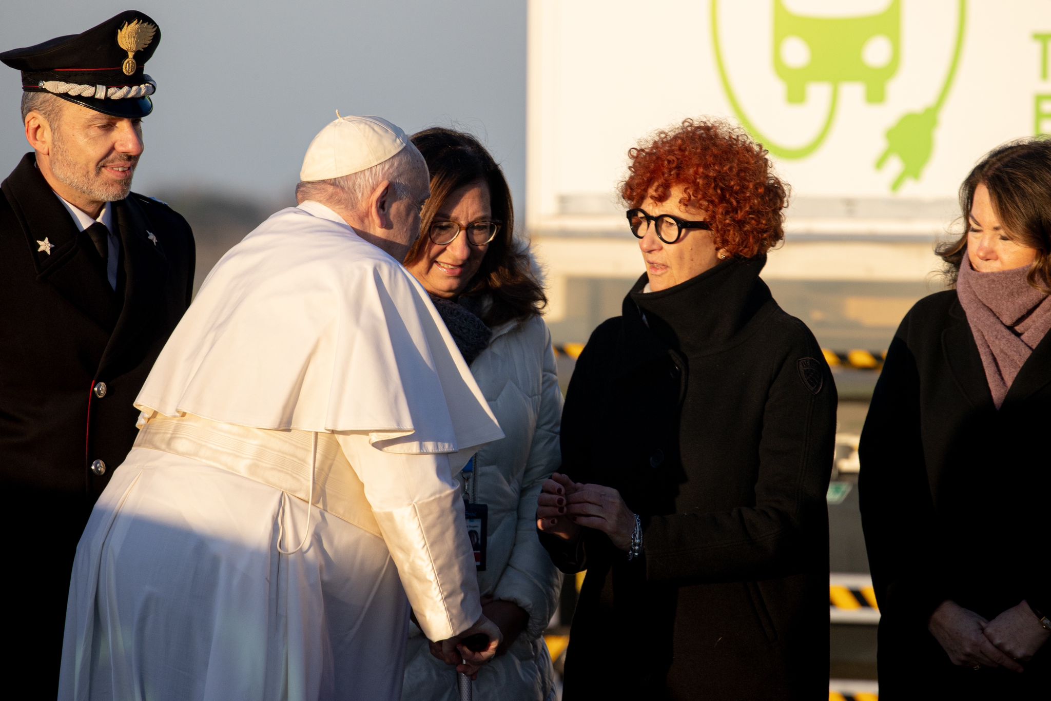 Paven har entret sitt fly og har nettopp takset ut på rullebanen. Med på flyet har St Rita Radio – EWTN Norge den katolske journalisten Elias Turk og den katolske fotografen Gianluca Teseo. De vil sende oss bilder og videoer gjennom pavens reise.
