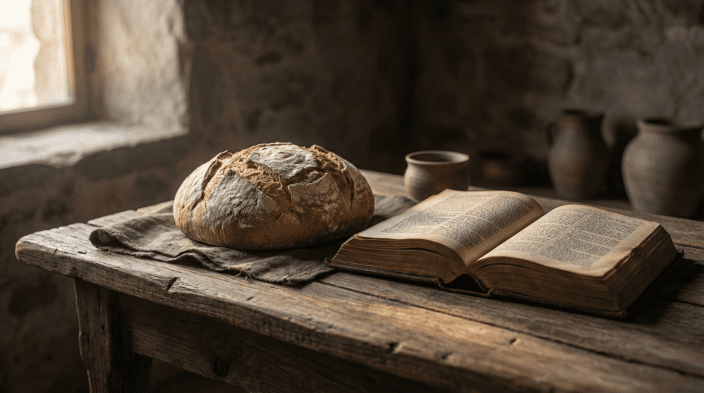 Med Jesu Kristi fødsel gikk det slik til: Hans mor Maria var lovet bort til Josef. Men før de var kommet sammen, viste det seg at hun var med barn ved Den hellige ånd. Josef, mannen hennes, som var rettskaffen og ikke ønsket å føre skam over henne, ville da skille seg fra henne i all stillhet. Men da han hadde bestemt seg for dette, viste en Herrens engel seg for ham i en drøm og sa: «Josef, Davids sønn! Vær ikke redd for å ta Maria hjem til deg som din kone. For barnet som er unnfanget i henne, er av Den hellige ånd. Hun skal føde en sønn, og du skal gi ham navnet Jesus, for han skal frelse sitt folk fra deres synder.» Alt dette skjedde for at det ordet skulle oppfylles som Herren har talt gjennom profeten: Se, jomfruen skal bli med barn og føde en sønn, og de skal gi ham navnet Immanuel – det betyr: Gud med oss. Da Josef våknet av søvnen, gjorde han som Herrens engel hadde pålagt ham og tok henne hjem til seg som sin kone og levde ikke sammen med henne før hun hadde født sin sønn. Og han ga ham navnet Jesus. (Matt 1, 18-25)