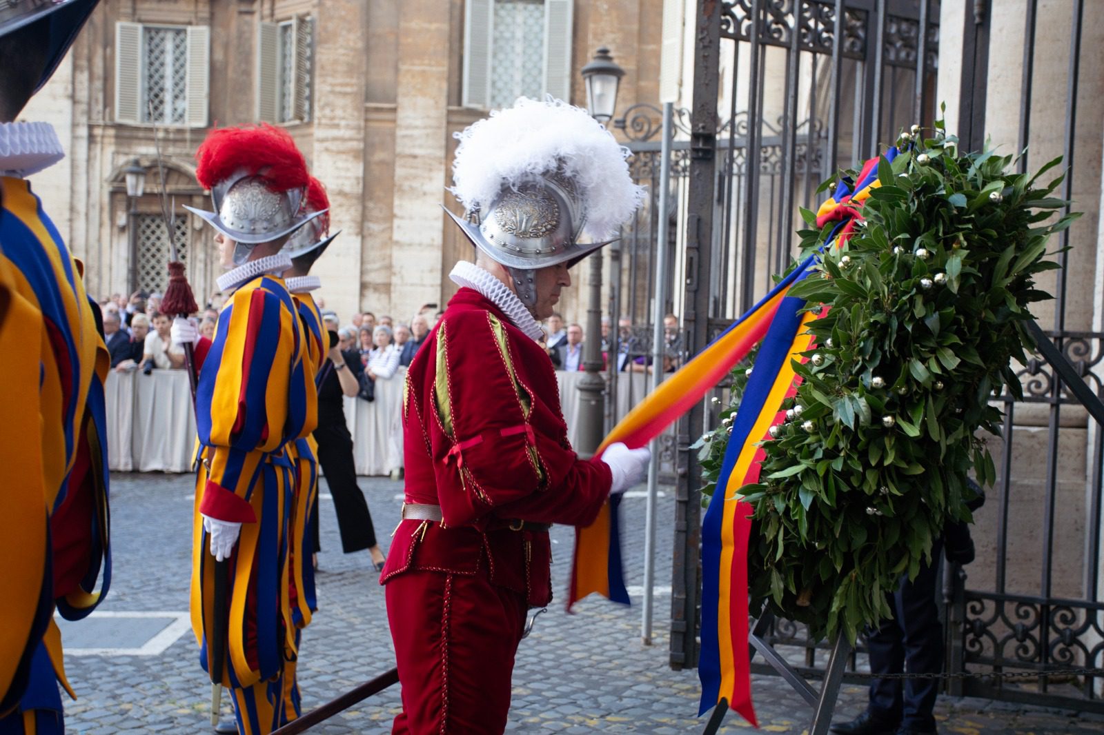 I forkant av morgendagens edsavleggelse mintes den pavelige sveitsergarden 147 vakter som døde i forsvaret av paven under plyndringen av Roma i 1527, med en tradisjonell kransseremoni i Vatikanet.