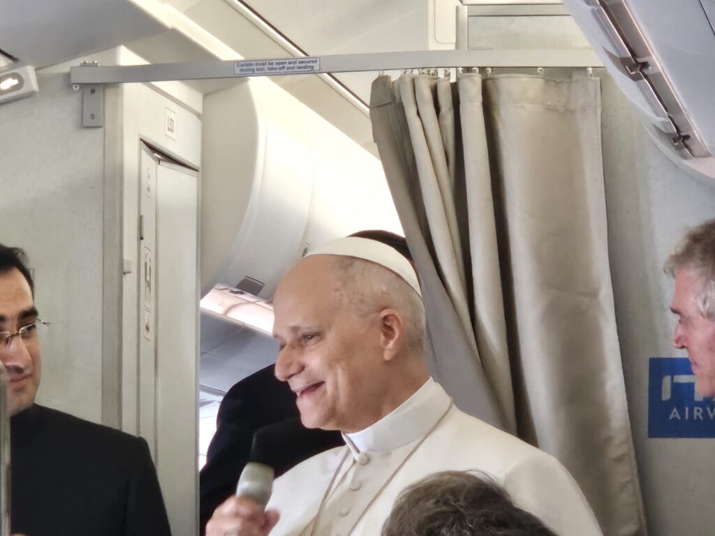 Pave Leo XIV understreker at han ikke er politiker, men hyrde for Kirken. På paveflyet sa han at hans kall er å forkynne evangeliet og arbeide for fred, forsoning og dialog mellom folk og stater.